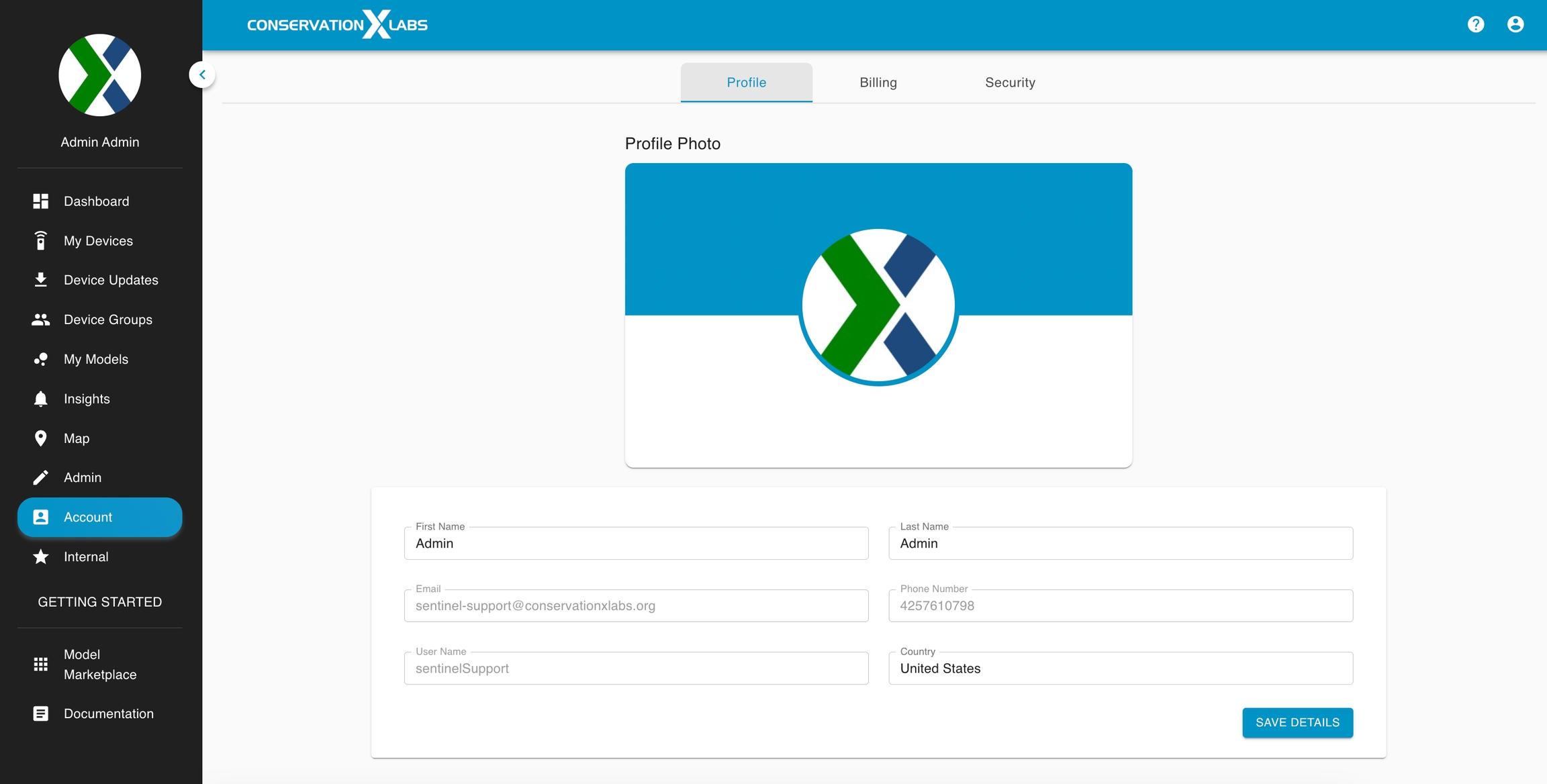 Use this tab to control your main profile details. Emails, usernames, and phone numbers can not be changed. Contact Sentinel support if you need these fields to be changed.