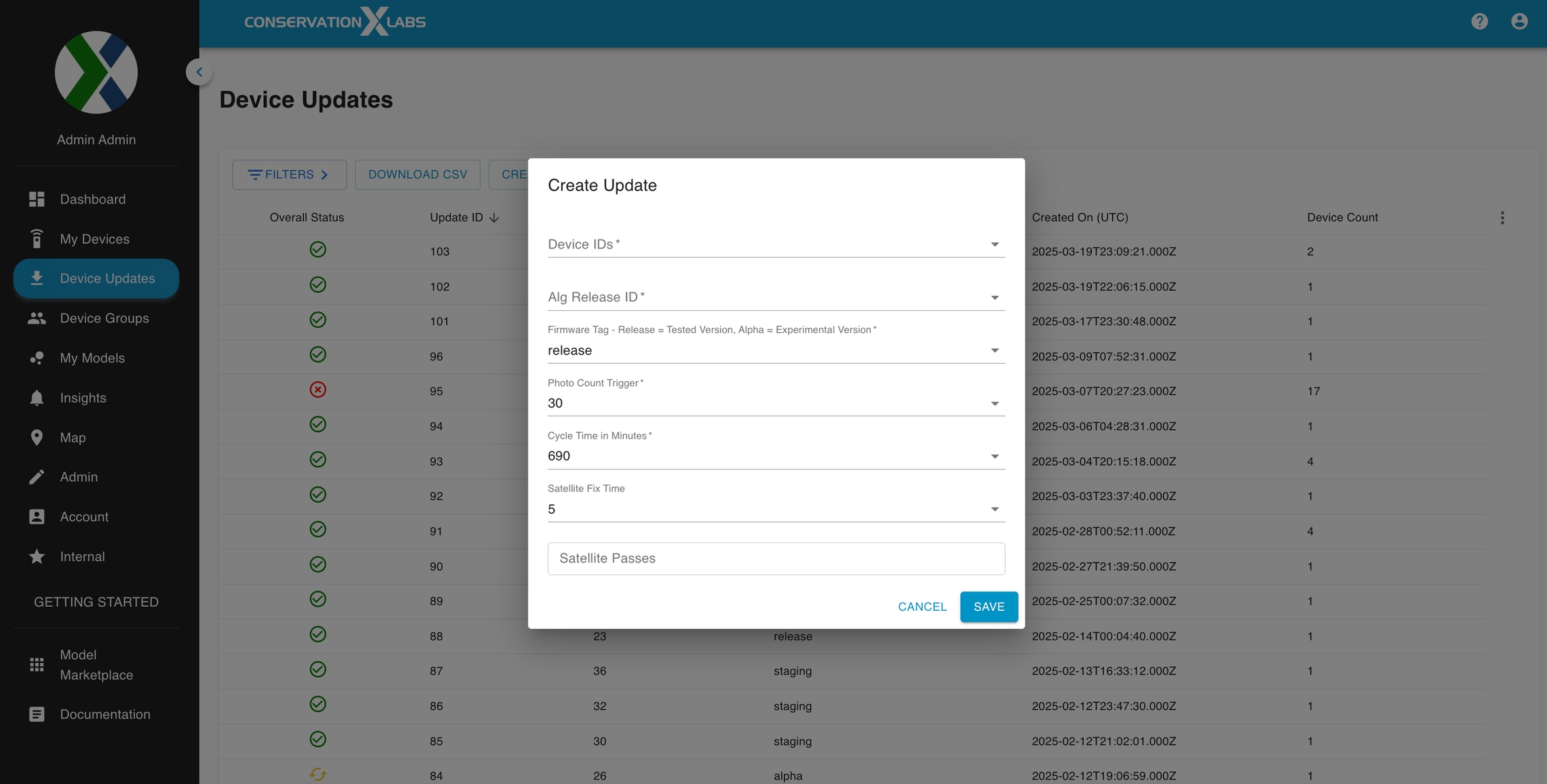 Envíe un correo electrónico a sentinel-support@conservationxlabs.org para solicitar una actualización del dispositivo. El correo electrónico debe contener la siguiente información:
