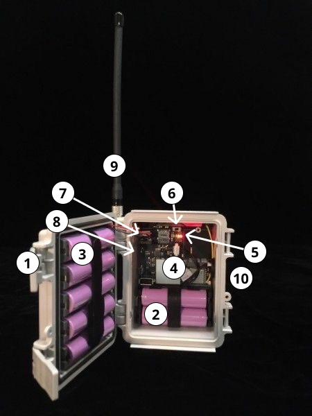 10. Ranura de complemento MicroUSB (para que la tarjeta SD con cable Spypoint se conecte a una cámara trampa)