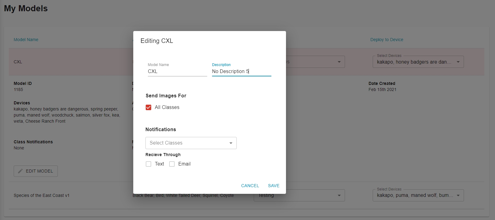 You can set up notifications for your delivered insights and be alerted in more places than your insights page. In My Models, click EDIT MODEL to select which (if not all) species in your model you would like to receive notification alerts for, and how you would like to receive these messages (text, email).