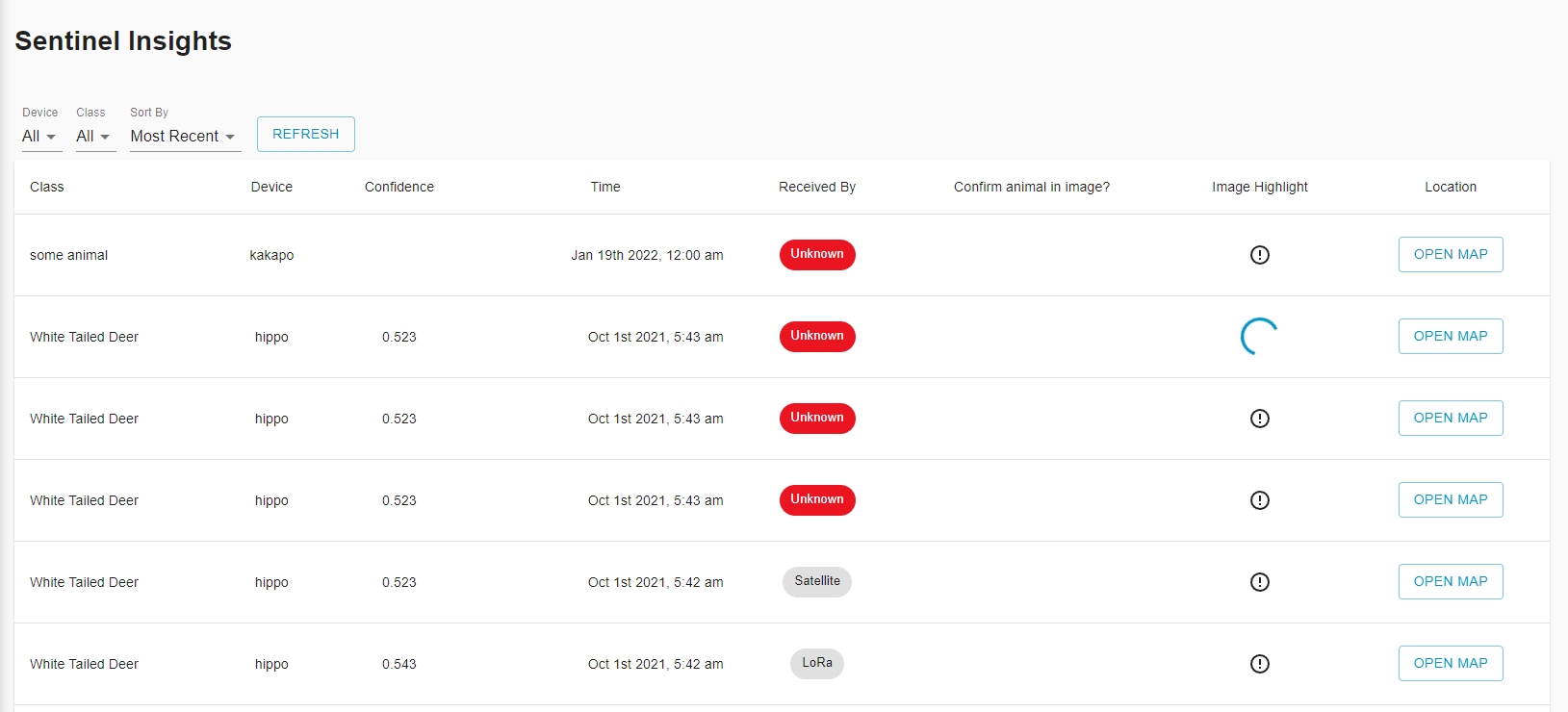 All insights sent from your fleet of Sentinel devices will appear on your insights page, in your online dashboard, and mobile app. More information about the Insights page is found here.